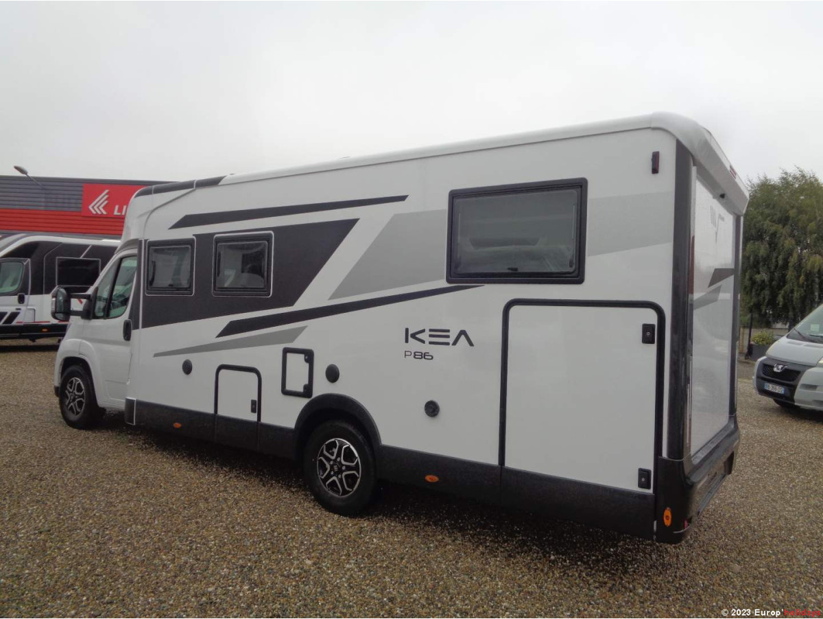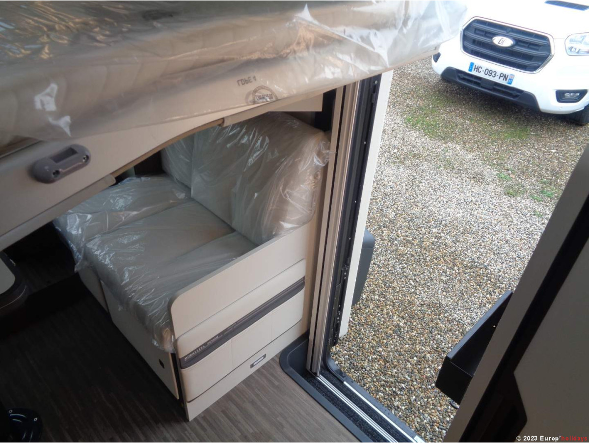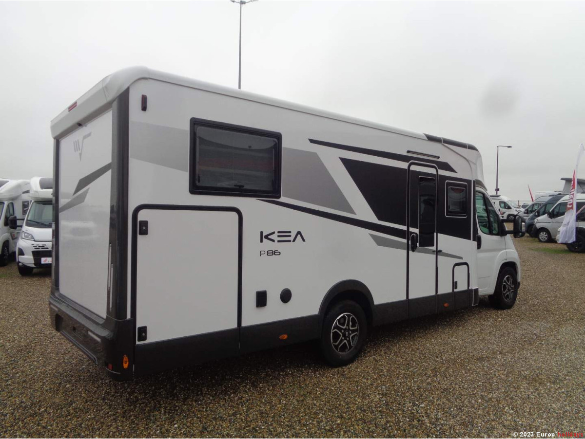 Der Mobilvetta Kea P 86 ist endlich da: teilintegriertes Wohnmobil mit Einzelbetten und elektrischem Hubbett, Face-to-Face-Sitzgruppe und großer Heckgarage.