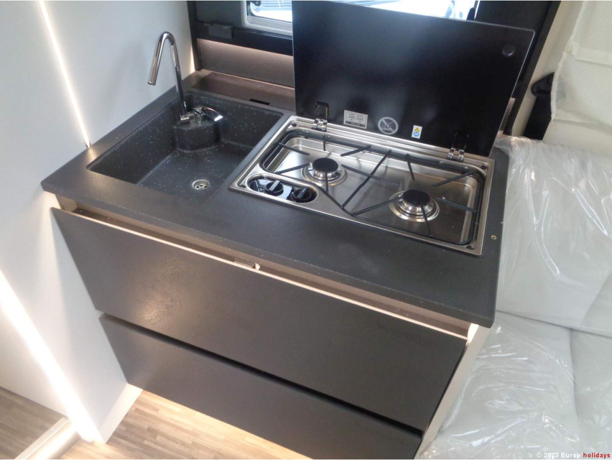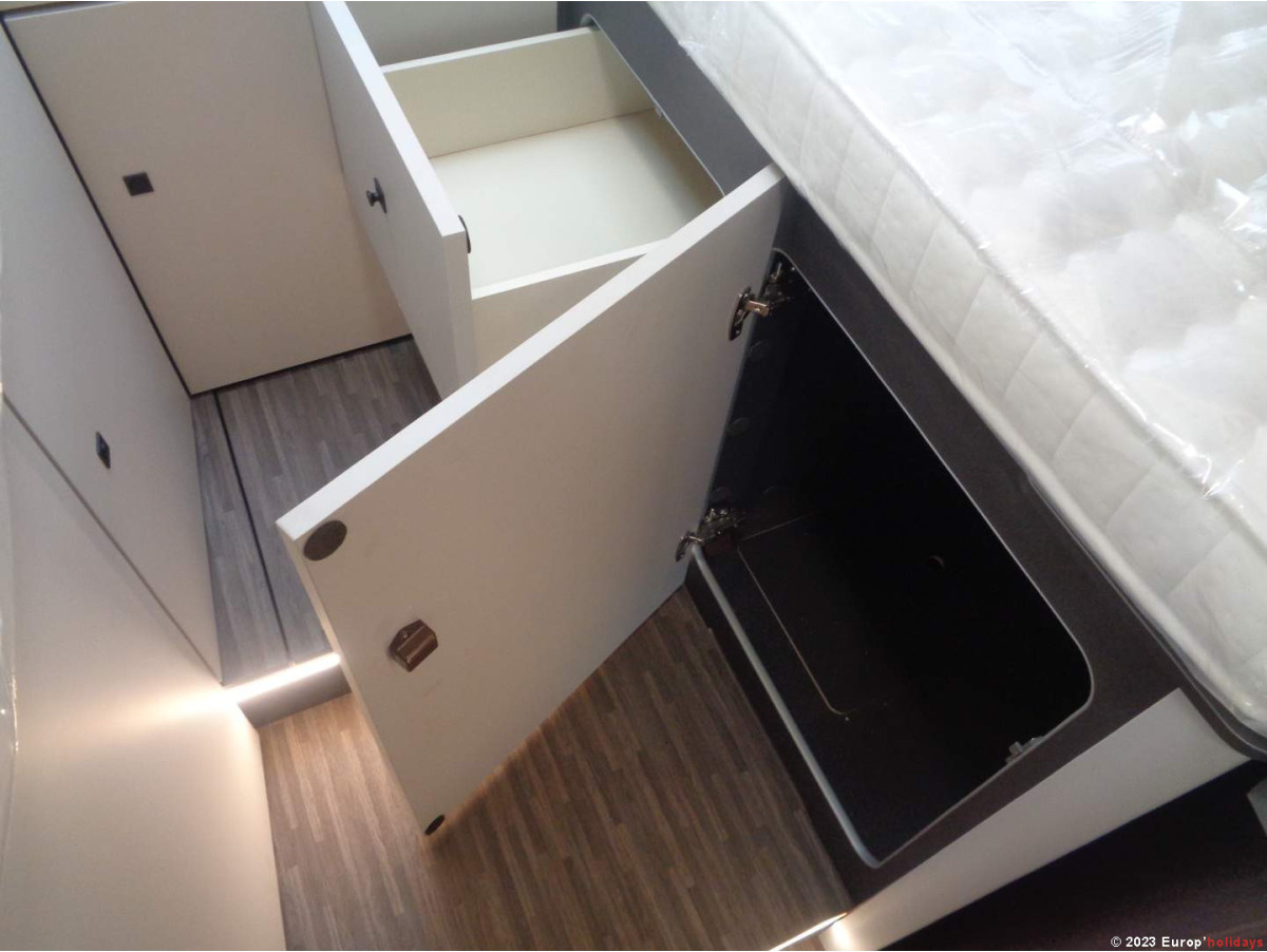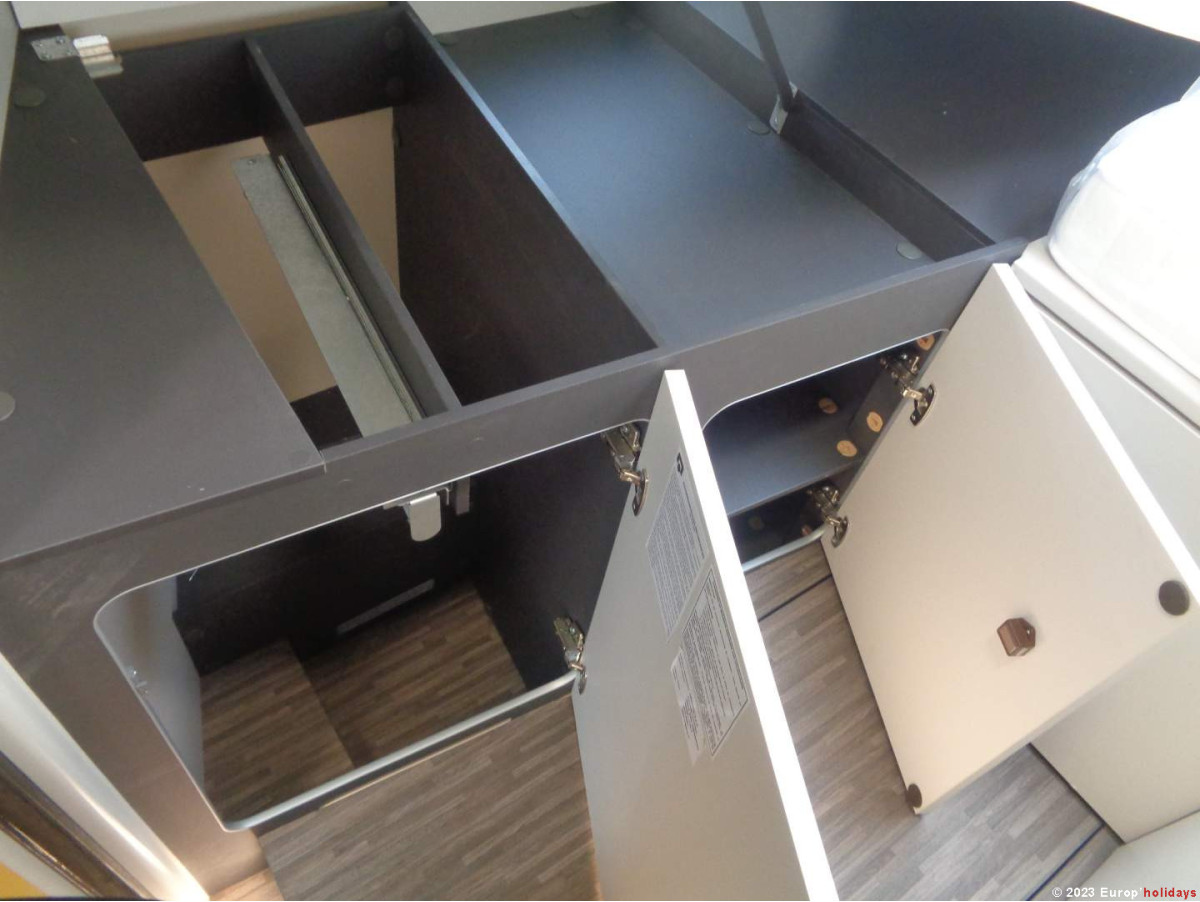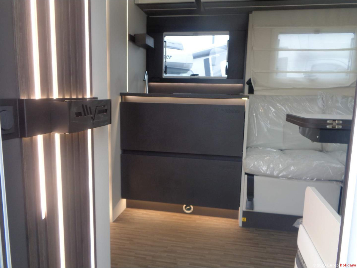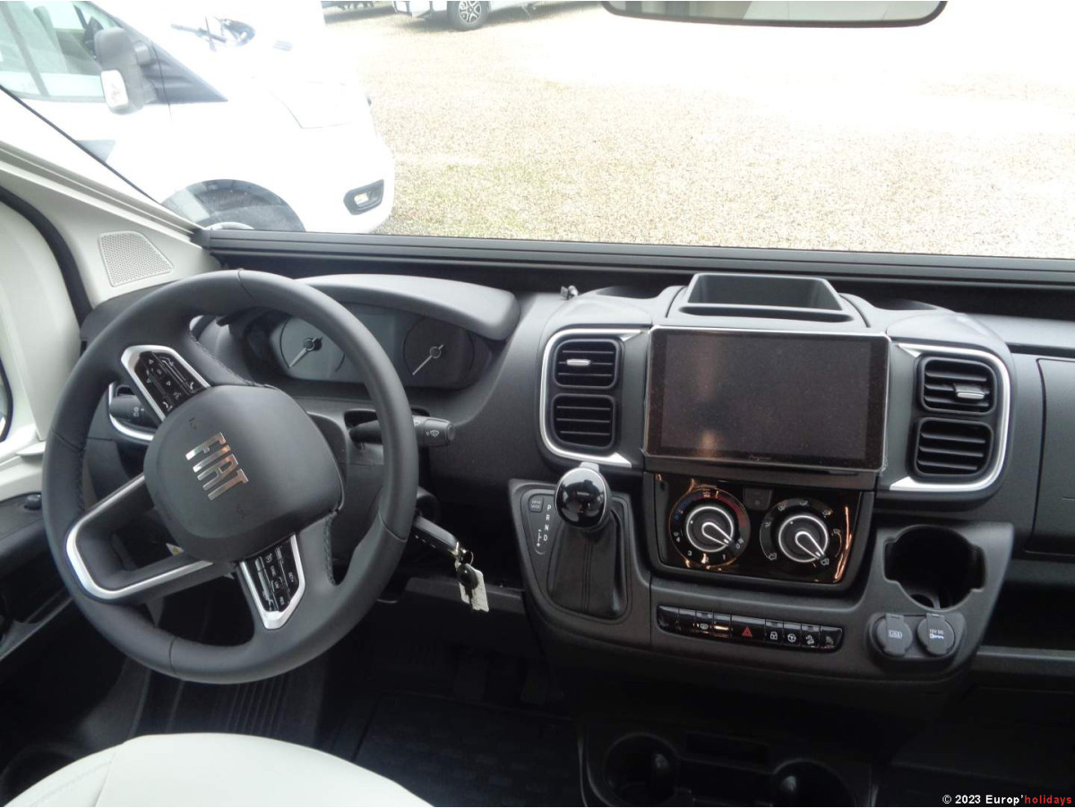 ABS, Fahrer-/Beifahrerairbag, Seitz-Fenster, Fiat-Klimaanlage, 100 % LED-Innenbeleuchtung, 16"-Alufelgen, XL-Aufbautür mit Fenster/Mückengitter/Mülleimer, Tempomat, elektrisches Hubbett, LED-Tagfahrlicht, 140-PS-Motor, Traction+ mit Bergabfahrhilfe, ESC, Frontrollos, Rückfahrkamera, isolierter & beheizter Abwassertank, Radio mit CarPlay, Truma iNet X Steuerung, Fahrerhaussitzbezüge, elektrische Handbremse, TPMS, adaptive Nebelscheinwerfer, 174 L Kompressor-Kühlschrank.